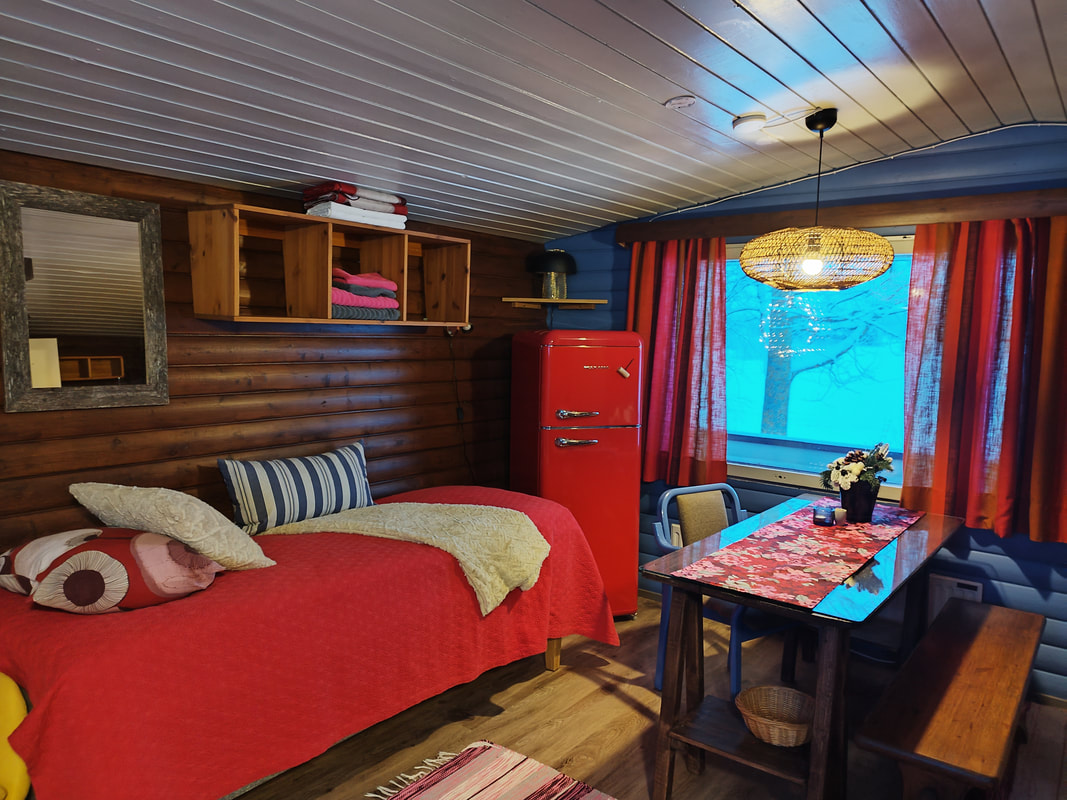 WINTER COTTAGES WITH OPEN FIREPLACE 10, 11, 14, 16, 19 and 20 These cottages has its own toilet and shower, kitchenette, TV, coffee maker, kettle etc. Prices always includes tableware, heating, bed linen and towels. For more information please click pictures below. In the cottages numbers 21-23 there is cooking corner. For more information please click pictures below.